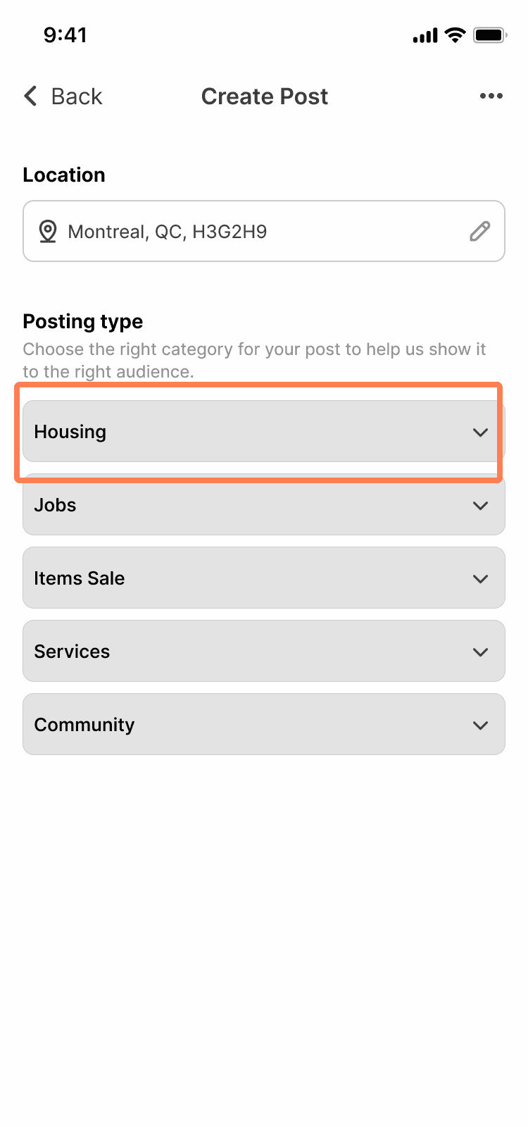 To make posting easier and less confusing, I grouped similar options together in expandable sections. This helps users see only what they need at each step, instead of being overwhelmed by too many choices. I also added a short helper line to guide first-time users, making it clearer what to do next. This approach simplifies the process and helps users focus on one thing at a time.