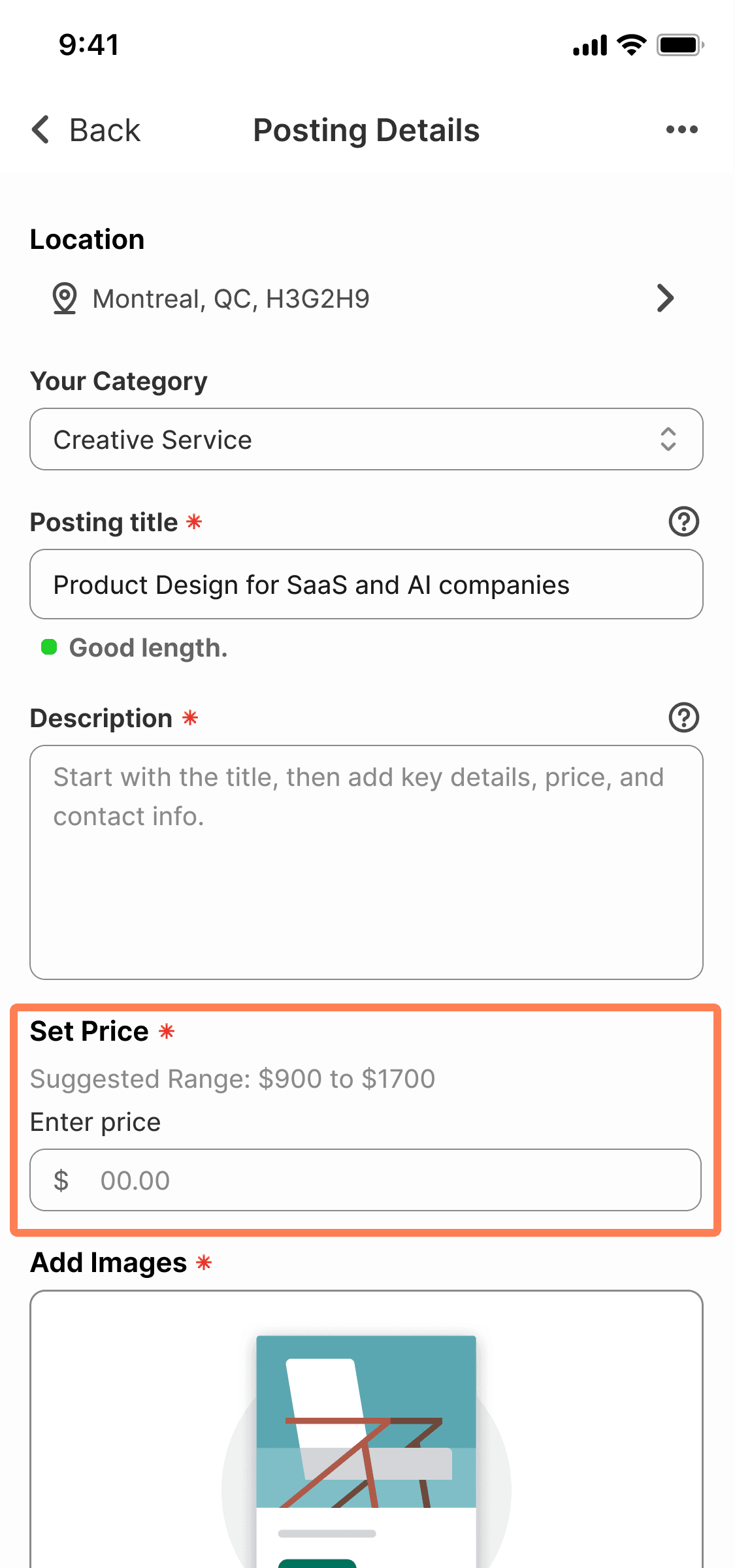 Reviewed the existing posting flow to identify pain points: slow process, confusion during Title and Description entry, and unclear guidance.