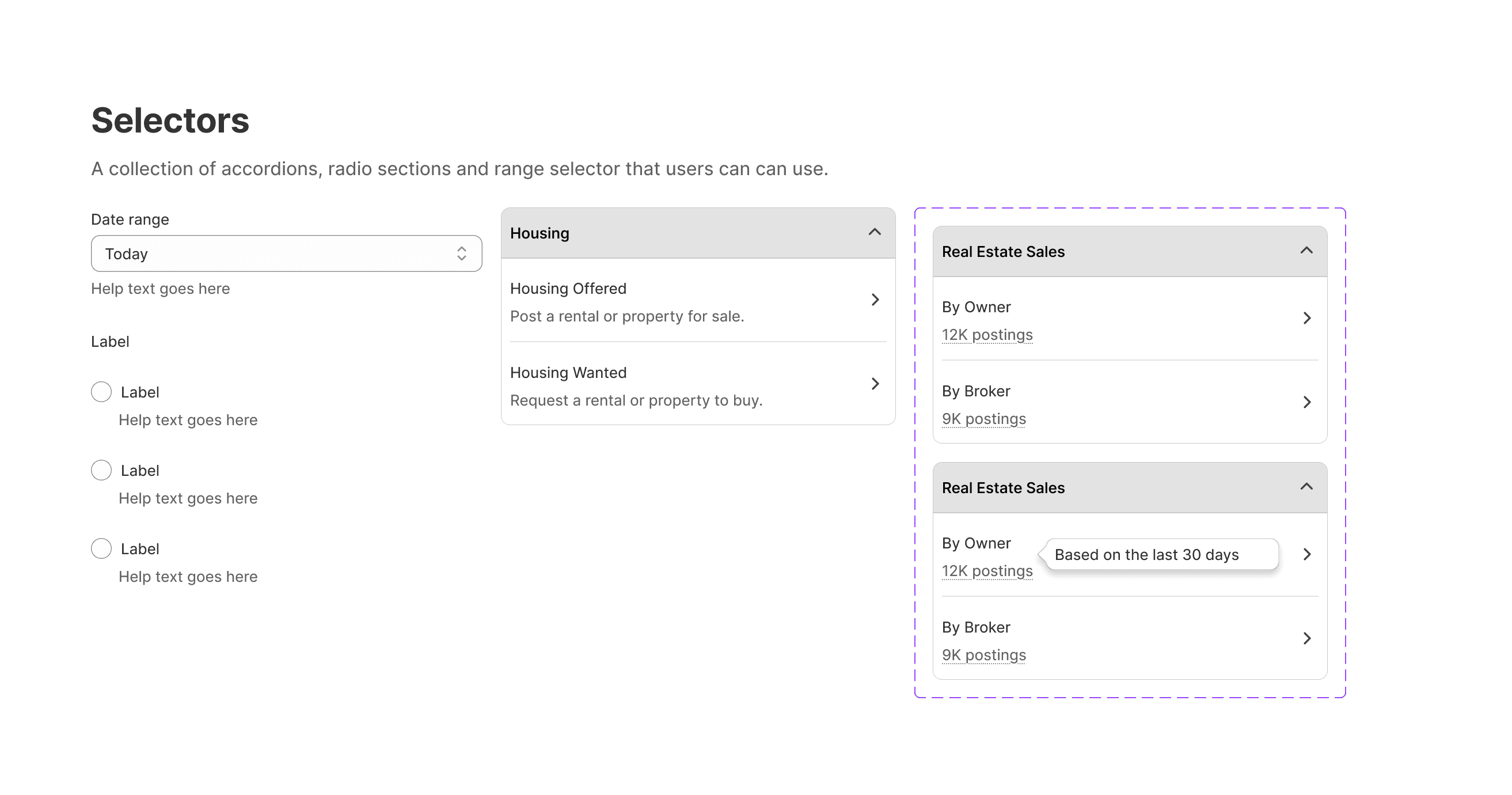 The Housing Flow guides users step-by-step through selecting property type, location, and details with accordion-style sections and clear helper text, making the process easy and efficient.