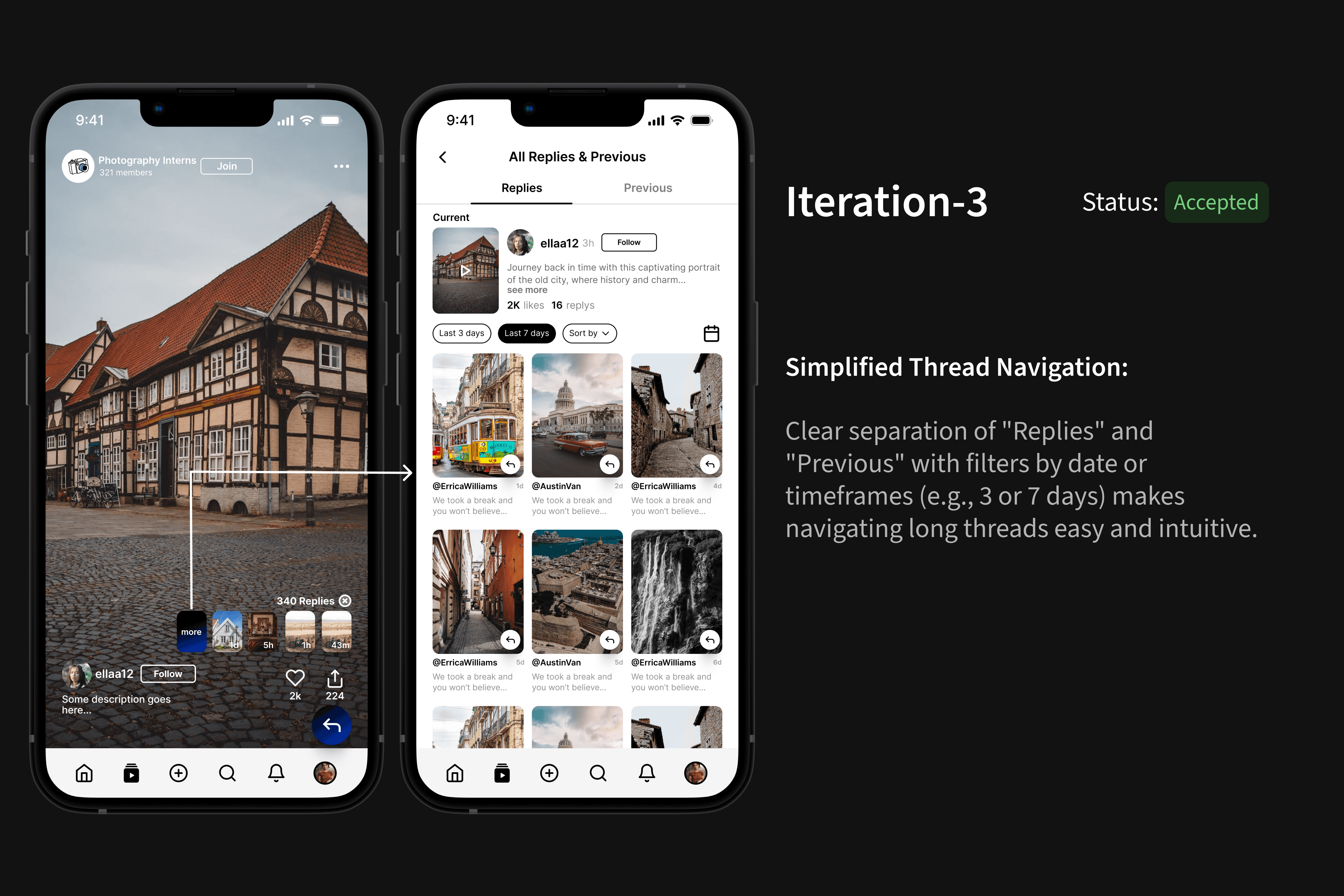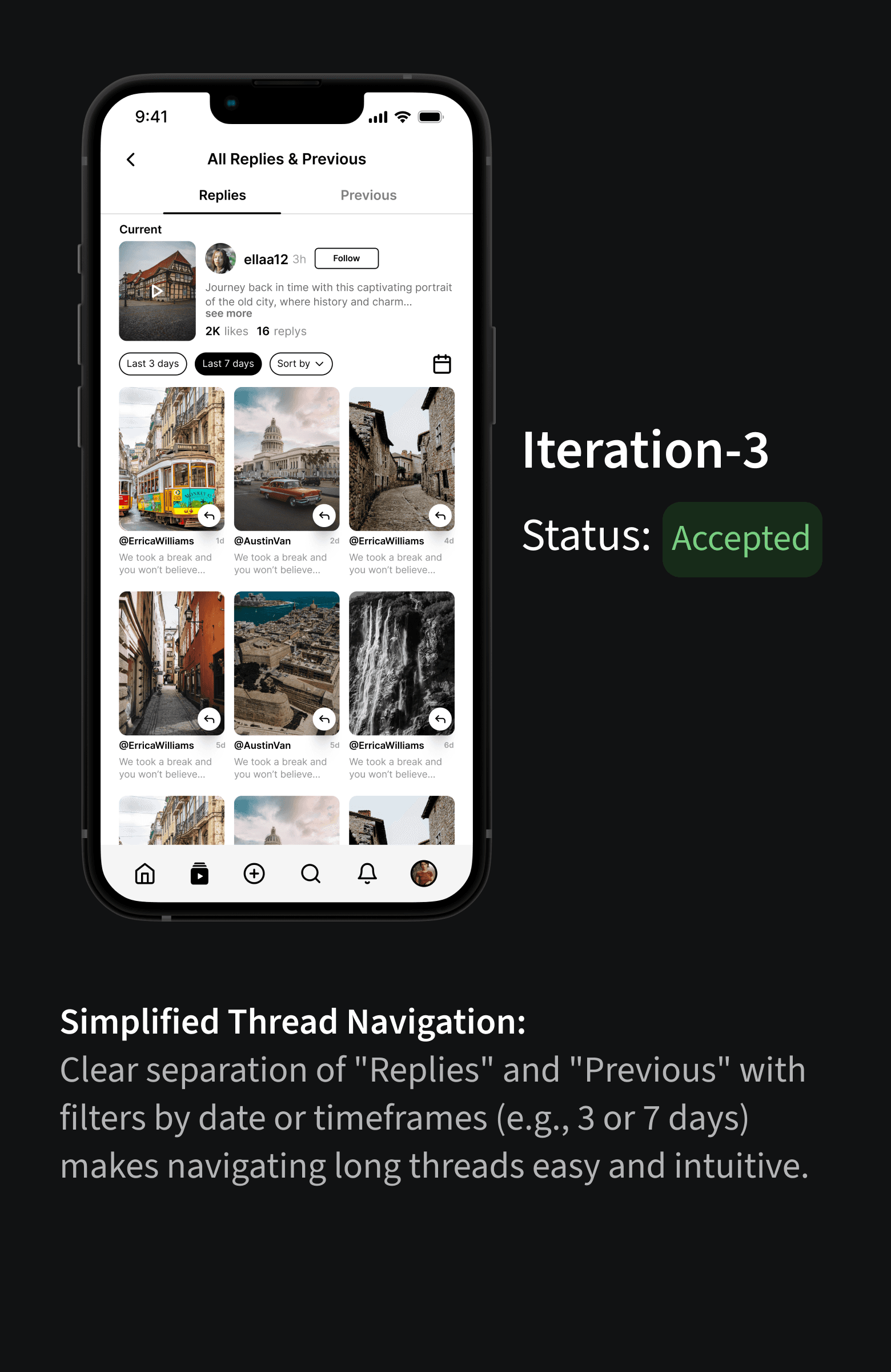 Users couldn’t see when replies were made, view all previous replies, or follow discussions effectively, making it hard to stay updated.