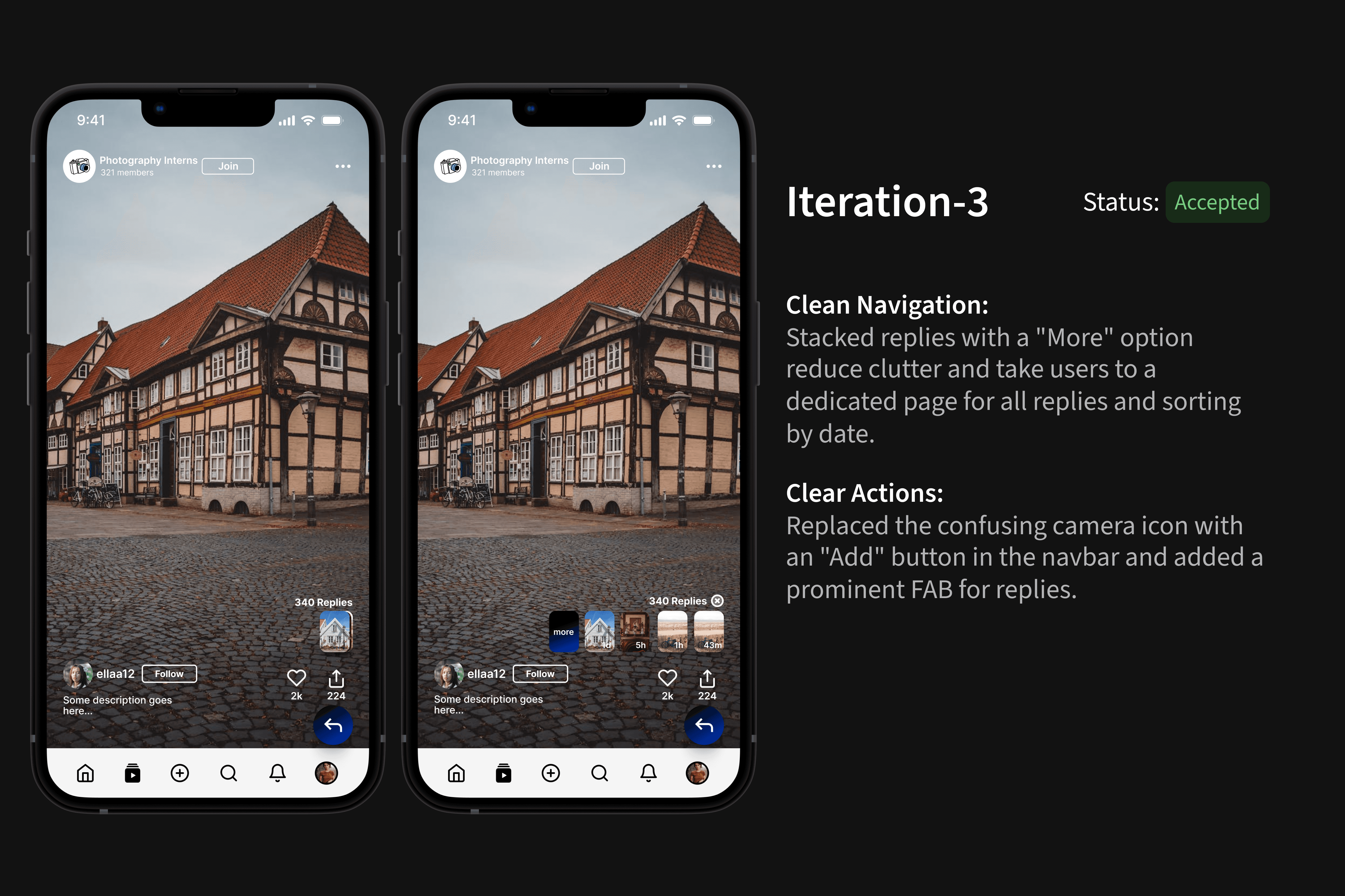Imagine an app with great potential but no clear design to guide its users. Replied had the functionality like groups, feeds, and reply threads etc, but lacked the structure and design to make those features intuitive and engaging.